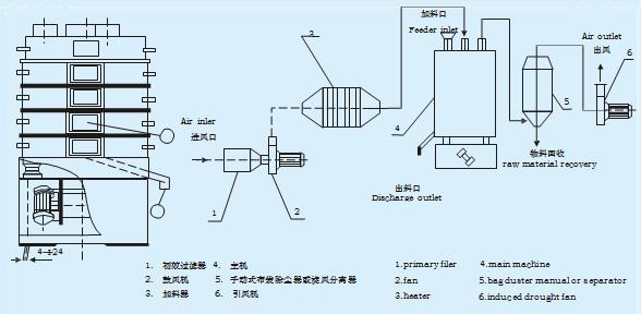 The raw material acts the motion if circle at helix bed from up to low, at the same the equipment can jump itself, so the contact surface between hot air and raw material is increased too and the dry effects is strengthened.